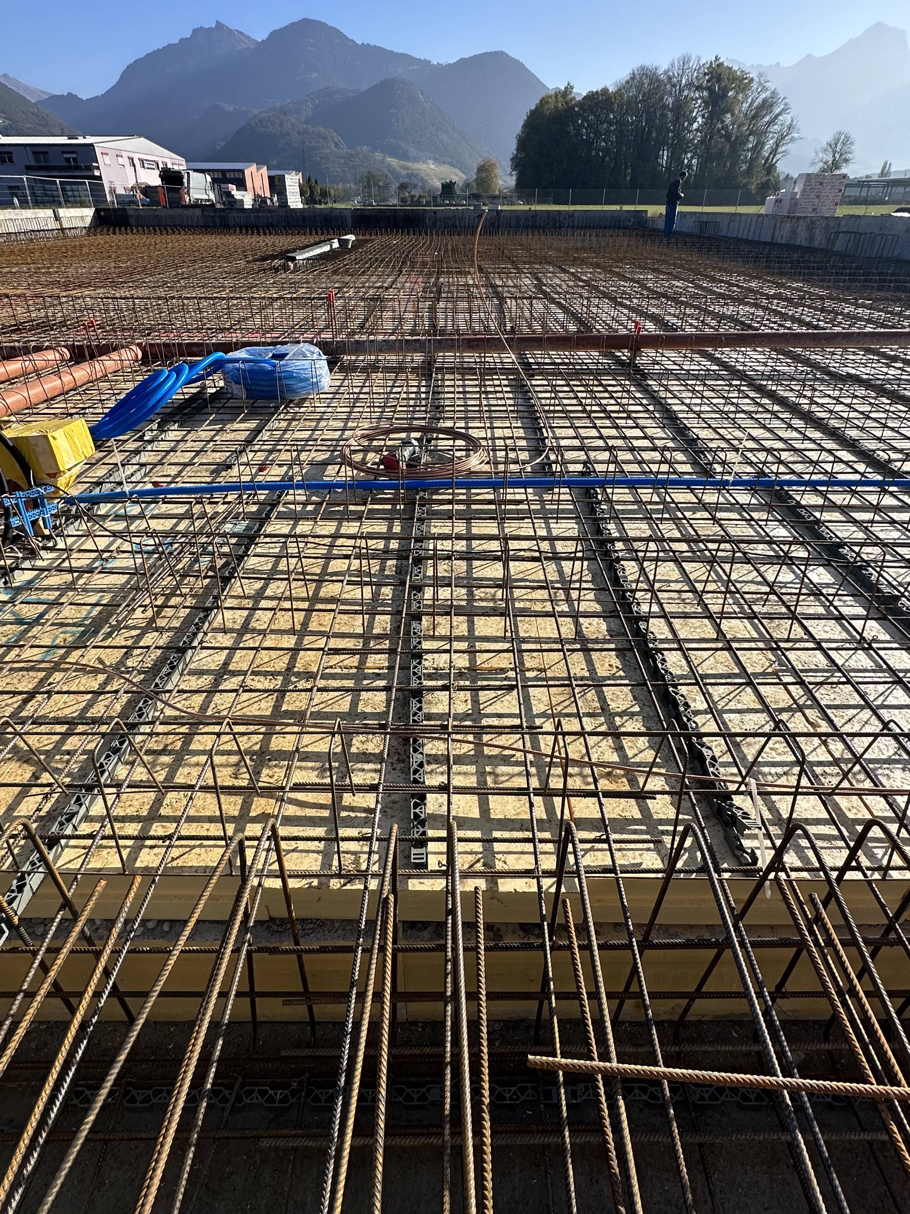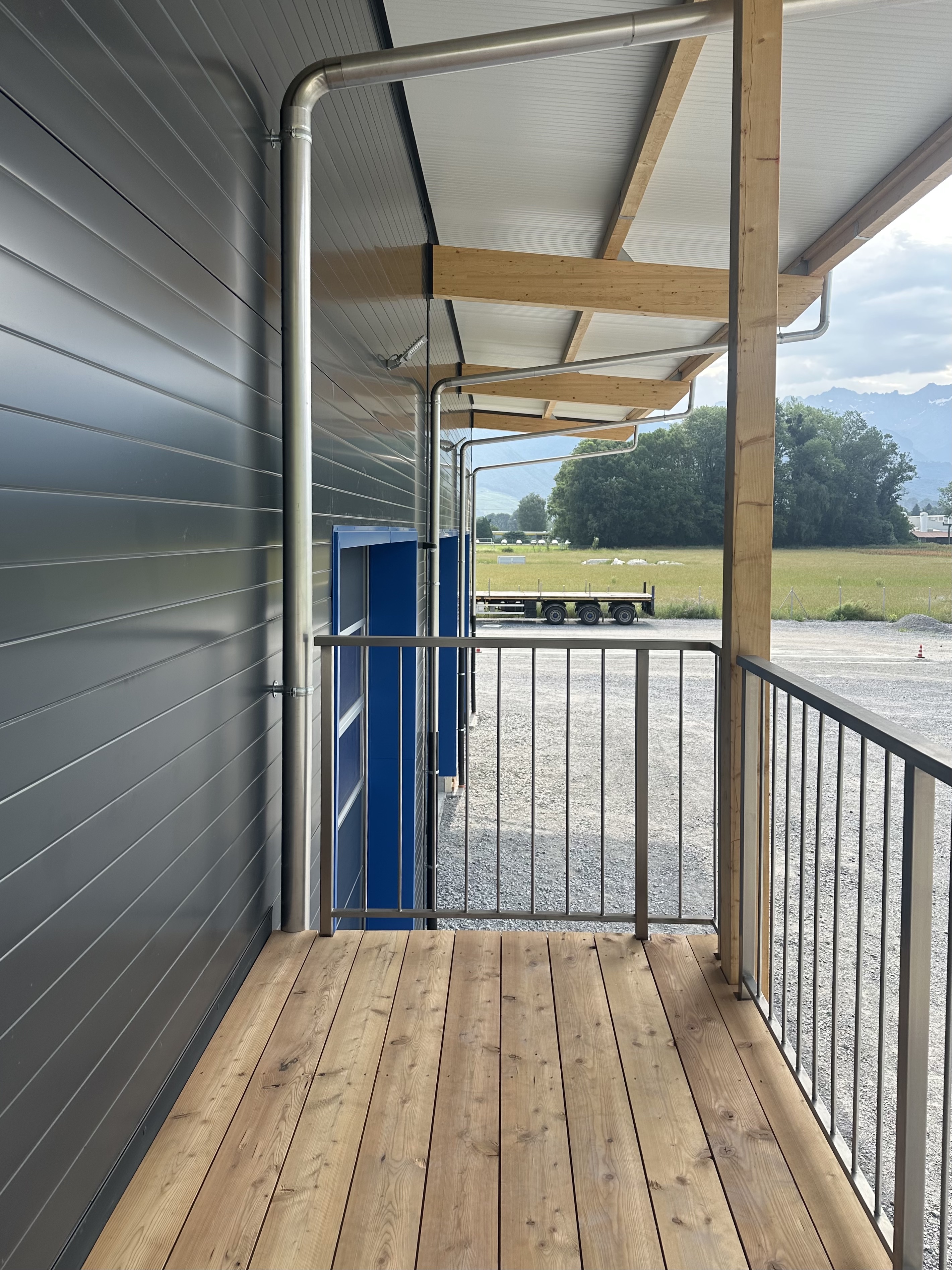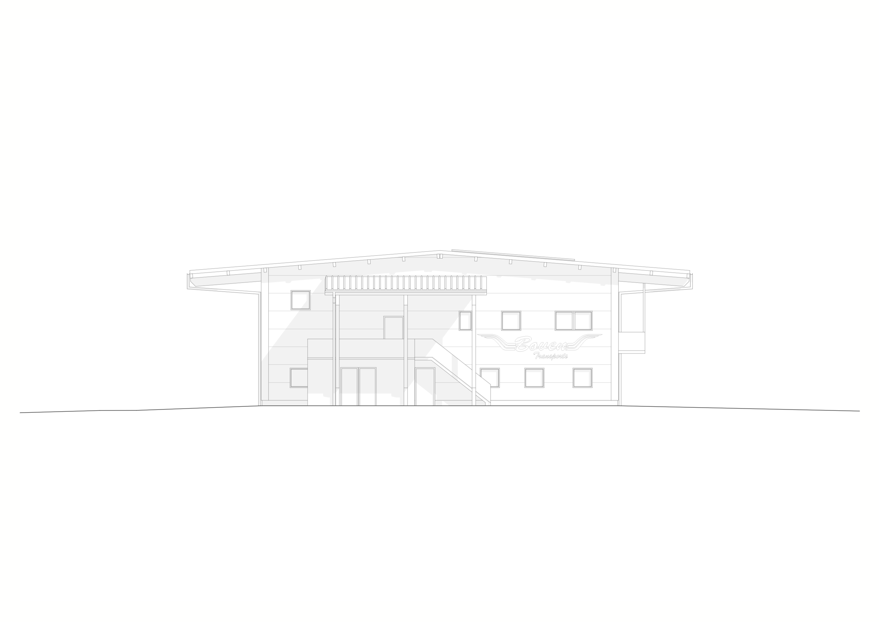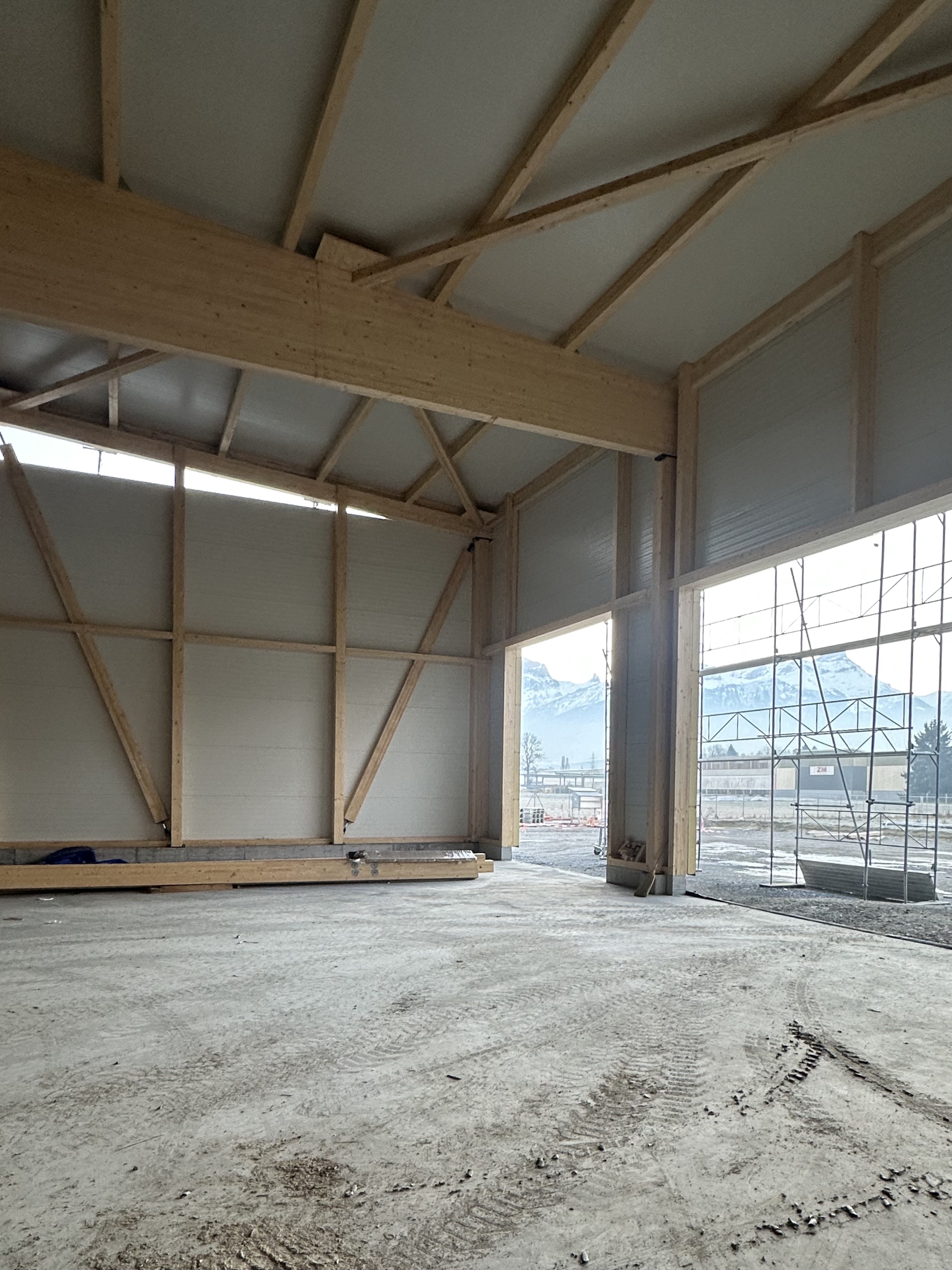 Sur la rive vaudoise du Rhône, dans la zone industrielle d’Aigle se trouve une bande de parcelles qui a récemment été définie comme zone à bâtir. C’est dans le virage à l’extrémité nord que l’entreprise Boven Transports a eu l’opportunité de réaliser son projet de halle. Le mandant possédant une collection de véhicules longs et parfois difficilement manœuvrables au vu de la nature des différents types de transport, cette situation avec un accès sur deux routes, au nord et à l’ouest, est un avantage certain.