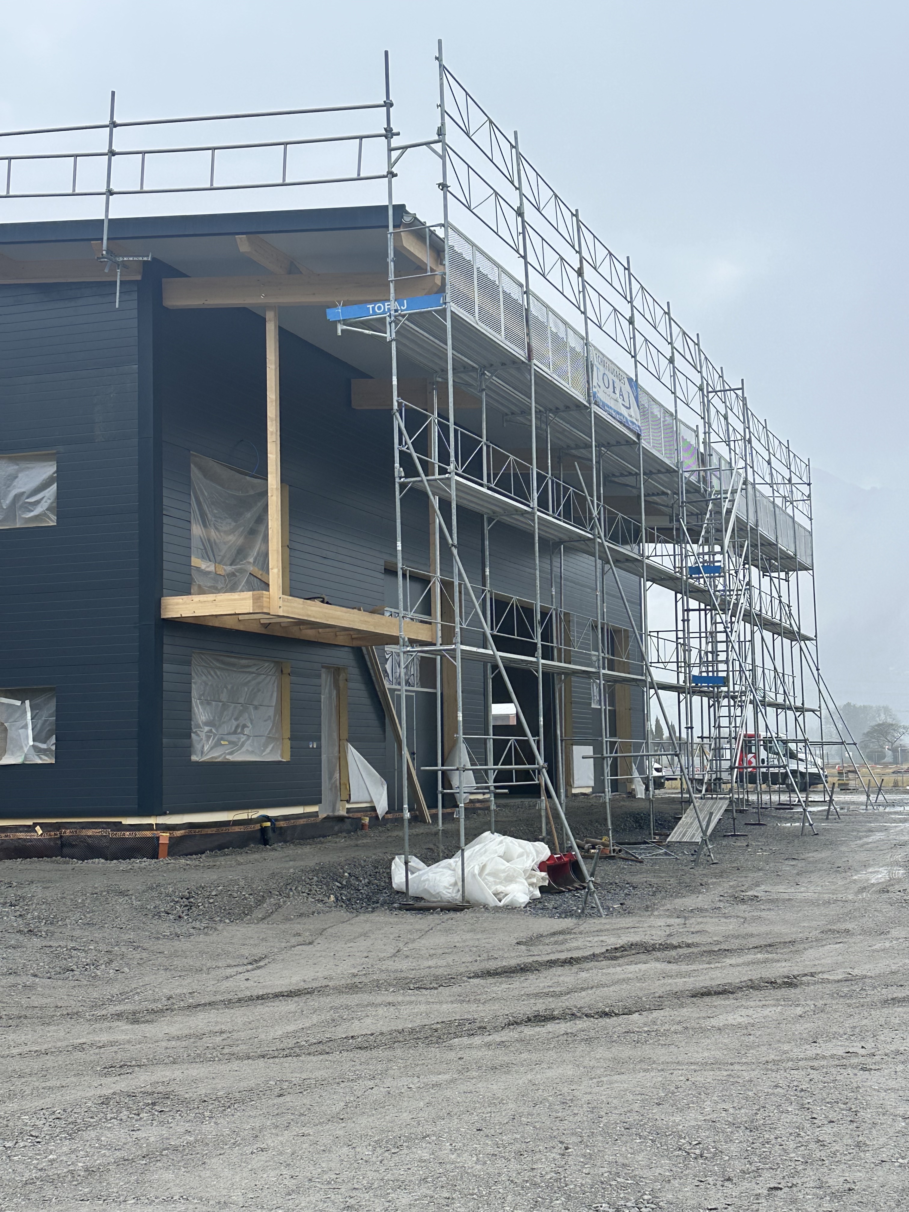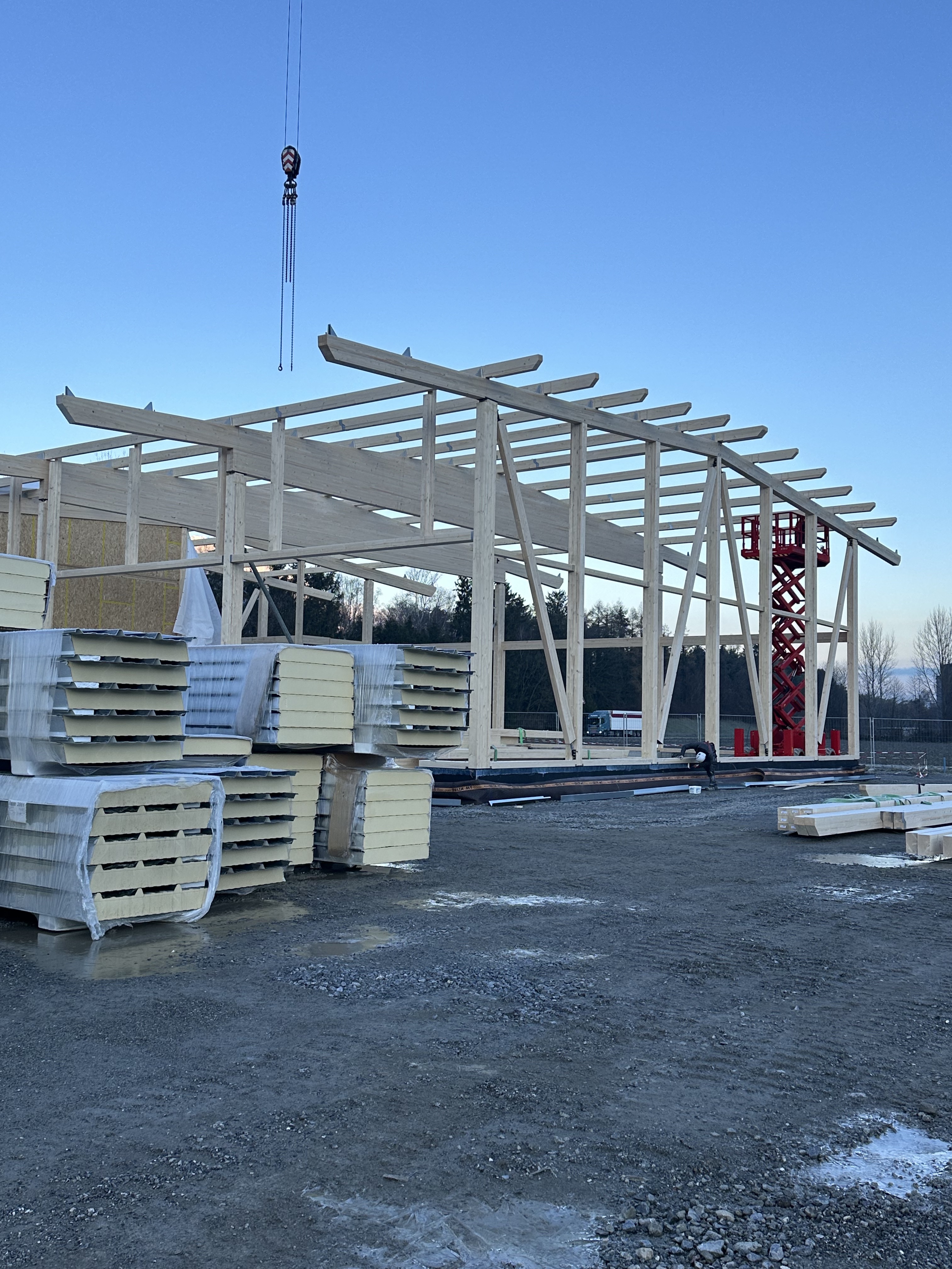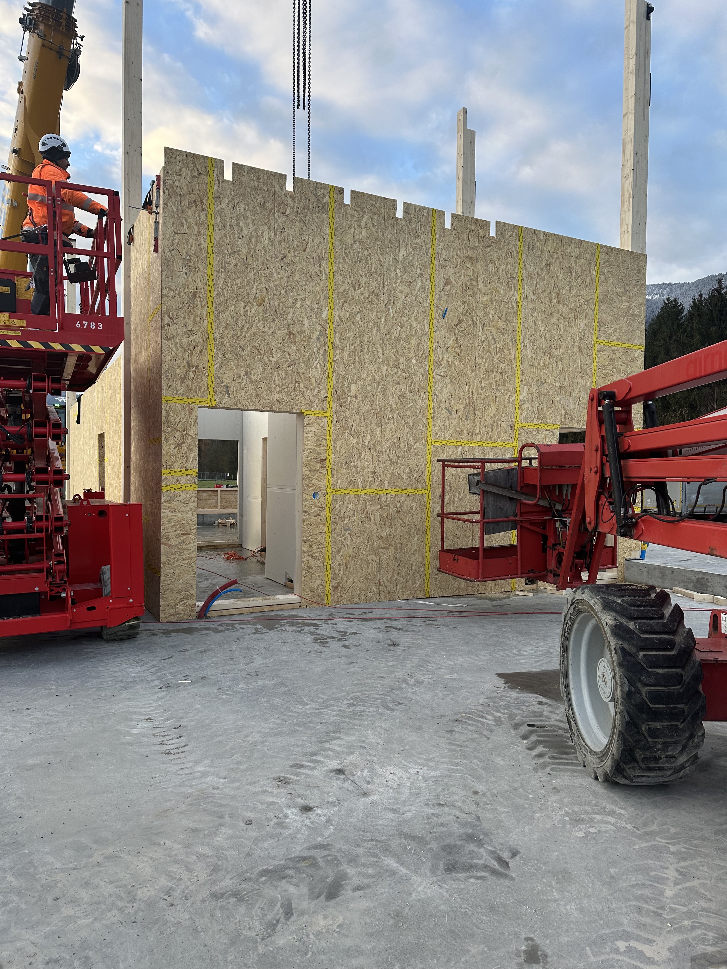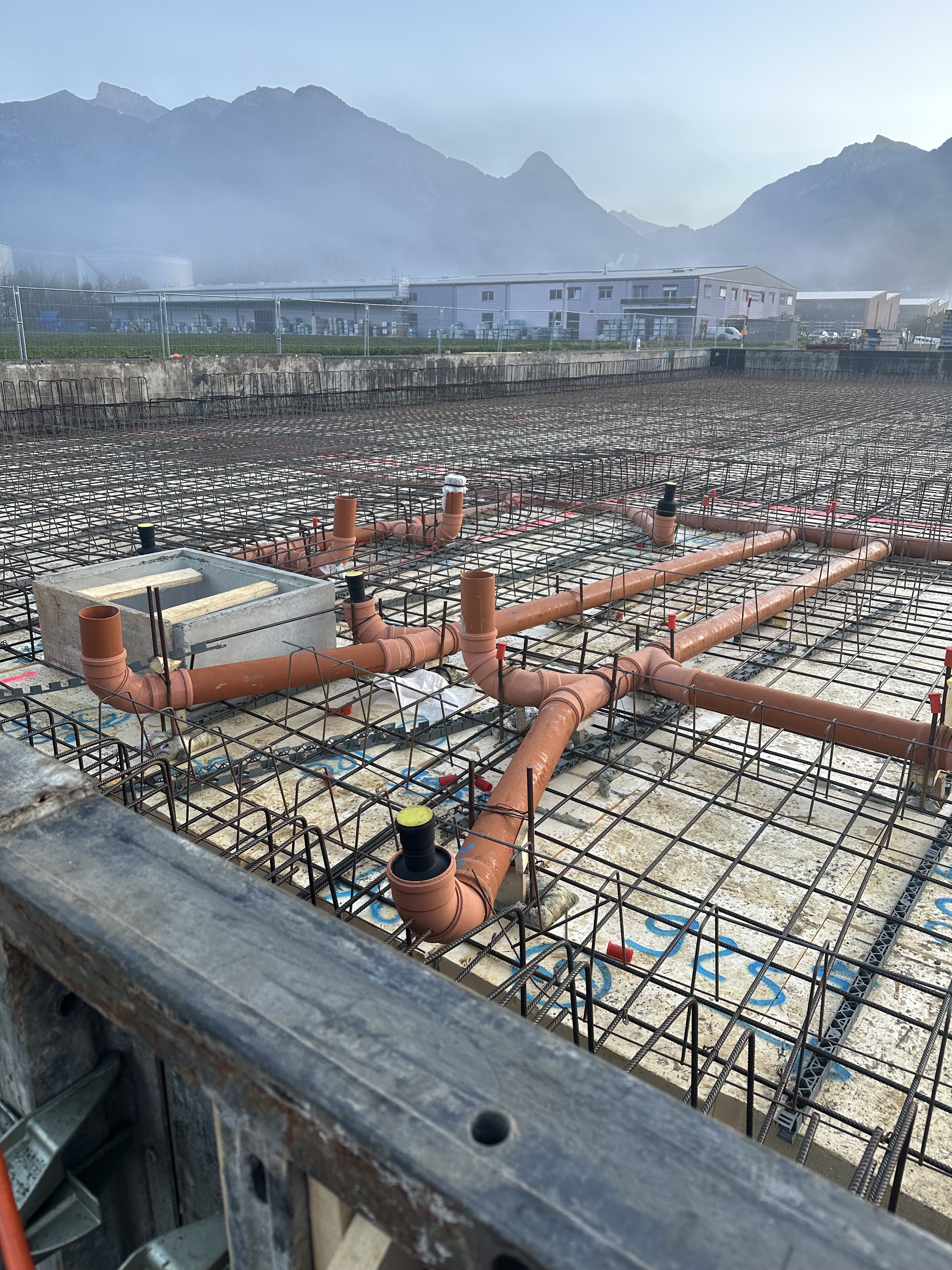 Sur la rive vaudoise du Rhône, dans la zone industrielle d’Aigle se trouve une bande de parcelles qui a récemment été définie comme zone à bâtir. C’est dans le virage à l’extrémité nord que l’entreprise Boven Transports a eu l’opportunité de réaliser son projet de halle. Le mandant possédant une collection de véhicules longs et parfois difficilement manœuvrables au vu de la nature des différents types de transport, cette situation avec un accès sur deux routes, au nord et à l’ouest, est un avantage certain.